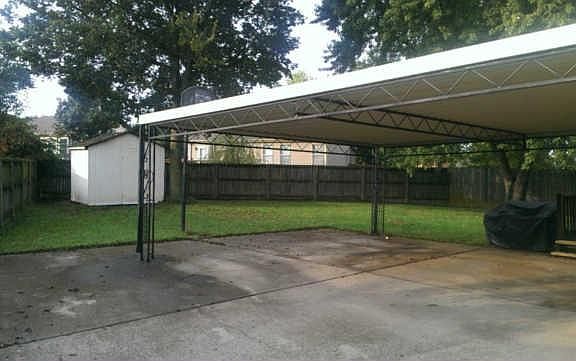 Check out your Ranch Style 1,799 Sq. Ft. ALL BRICK Home with a Fenced in spacious back yard with an Entry Gate on a ...approximately .24 Acre Yard. Store your items in the all purpose Shed then park your cars under the 2 car Carport for dry access into the Bonus Room using your French Doors. Enter through your family size Dinning Room into your Galley Kitchen with access to a separate Laundry Room or go through your SPACIOUS Living Room with a very High Ceiling passing your Fireplace. Either go to 1 of 2 Bedrooms with quick access to a Full Bathroom or go into your own spacious Master Bedroom Suite with it's own sectioned off private Full Bathroom with a Garden Tub and shower, double vanity sinks, or you can also glance into your back yard through your own double pane exit door. Lots of room for a growing family or for an existing family to spread out; for a Low Price of $144,900. You will have a $500.00 1 yr. Home Warranty, and you don't have to worry too much about cleaning out your savings...You may receive assistance with your Closing Costs...Got a Good Deal ready to happen.