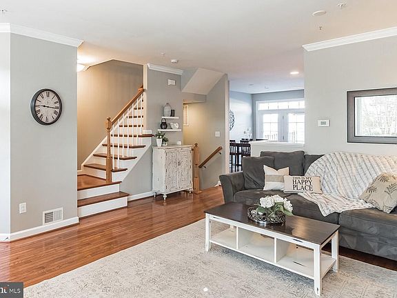 Fabulous 3-level brick front townhouse with over 2100sf finished indoor living space plus detached 2-car garage. Perfectly situated facing a lovely courtyard where neighbors gather, kids play, and you sense that old town feel. Gleaming hardwood floors throughout the entire main level, spacious and bright living room, remodelled kitchen (2016) featuring sleek quartz countertops, upgraded stainless steel appliances, gas cooking, beautiful backsplash, modern white cabinetry, large center island, breakfast/dining area; Step out to the fenced-in backyard with brick patio, great outdoor living space for lounging around, cooking-out, or entertaining. Upstairs you will find 3 bedrooms, each with ceiling fans, and 2 full bathrooms; Master bedroom suite includes a large walk-in closet, tray ceiling, lighted ceiling fan, large double sink vanity, separate shower and soaking tub. Fully finished basement has a large recreation room w/full size window, 4th bedroom (no window though), 3rd full bathroom. Additional upgrades/updates include: New furnace & indoor/outdoor AC units in 2020; new washer and dryer (2021), new garage door opener (2019), new recessed lights & new light fixtures (2019), Oak stairs and wood floors in basement (2015); new steps to backyard and new storm door in the front (2020). Ideally located in highly sought after Villages of Urbana: Walking distance to Giant shopping center, Market District, restaurants & shops, Urbana library. Abundant community amenities to enjoy: walking/biking trails, shops, restaurants, community pools (including one recreational water park), basketball courts, tennis courts, seasonal farmer's market, and multiple playgrounds/parks. Plenty of parking spaces, Great blue-ribbon schools! Move in Ready, No rent back is needed. Don't miss it.