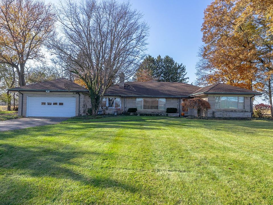 This stunning ranch-style home offers the perfect blend of space, comfort, and privacy. Nestled on 2 acres of land, this property boasts breathtaking natural beauty. As you enter the home, you'll be greeted by a spacious living room with big windows that let in plenty of natural light. The living room is complete with a cozy fireplace. Under the carpet are beautiful hardwood floors that are ready to be refinished. The bedrooms are generously sized with the main bedroom featuring a large walk-in closet. The enclosed porch and back porch provide the perfect spaces to relax. The full basement is a standout feature of this property, with plenty of storage space, a large entertainment area, and a fireplace. The large 2 car attached garage and second detached 2 car garage offer ample space for your vehicles, tools, and hobbies. The bones of this home are impeccable. This is a rare opportunity to own a truly spectacular property that offers the best - a peaceful oasis and plenty of space!