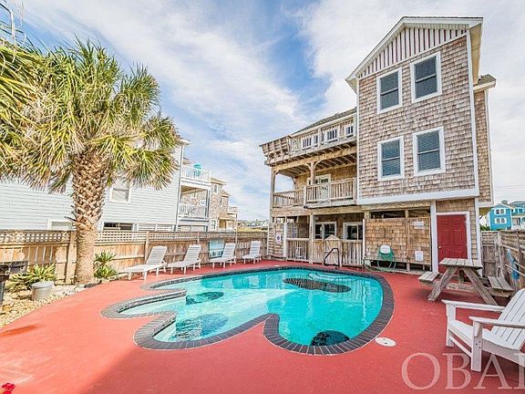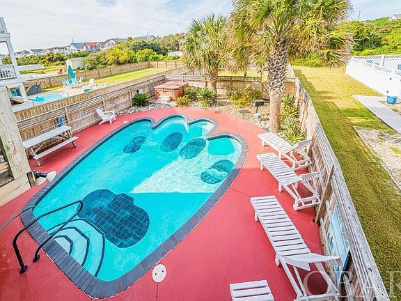 FABULOUS 2022 OWNER RENTS AT $182,042 - THAT IS AN 11% RETURN CASH FLOW! *** ELEVATOR *** ONE OF A KIND "DOG PAW PRINT SHAPED HEATED POOL" *** "HAPPY DOG DAYS" is a 5 BEDROOM SEMI-OCEANFRONT IN NAGS HEAD W/ TROPICAL GORGEOUS LANDSCAPING & CUSTOM PAINTED MURALS *** Located Milepost 11.8 approx. on the Beach Road ... ACROSS FROM PUBLIC BEACH ACCESS W/ PARKING *** Lush Island Landscaping * Volley Ball Court area * FENCED PET AREA * MULTIPLE En Suite Master BR's w/ Full Baths (4 Full Baths and 3 Half Baths) * Primary Powder Room just off the Great Room for guests *** Starting on the Top Level 3 - You will love the Large Open Great Room - with Tile Flooring, Gas Fireplace, Custom Wood Finishes/Trim, Custom Painted Wall Murals & Nicely Appointed and Furnished Interior * Cozy Kitchen w Center Island * High Ceilings, Tropical Ceiling Fans, Gas Fireplace w/ Built in Entertainment Center *** Rear Sun Deck overlooks rear yard with the COOLEST POOL (Paw Print Pool!) on the Outer Banks, Palm Trees, Hot Tub, Volleyball Court & Fenced Pet Area - Great Space to Entertain or just Enjoy! ***Level 2 Features Multiple En suite Master Bedrooms w/ Full Baths & Oceanside Deck the width of the home - with access from the bedrooms * Main Front Entry Foyer mid-level 2 * Level 1 Features an Open Great Room with tile floor, Kitchenette * Sliders out to FABULOUS POOL DECK AREA *** PRIVATE & YET OPEN *** Home Rents w Pets - there is a dedicated grassed pet area on the NE of the Pool *** You will want to head out past the pool gate to the Volleyball Court *** Just South of Nags Head Pier * Close to all kinds of shopping, restaurants, and Family Fun ... Miniature Golf, go karts, Wright Brothers Monument, Jockey's Ridge, Pirates Cove & Oregon Inlet Fishing Centers, Downtown Manteo & so much more! *** Happy Dog Days is offered fully furnished (with exclusions of a personal dog picture (48 x 48) and few other personal dog pictures AND owner locked closet items) *** Note: 2021 Upgrades: Newly Renovated Pool Concrete Deck, New Outdoor Polywood Furniture, New Hot Tub, Tile Has Been Professionally Cleaned, Various New Décor, Furniture and Some Bedding, New Outdoor Lighting, New Washing Machine, FREE Pool Heat Spring & Fall, Two New AC Units *** Note: Interior photos on loan from Beach Realty Kitty Hawk Rentals with permission and may not reflect the exact interior look or current furnishings *** HAPPY DOG DAYS is (and has been) a STRONG RENTAL INCOME PRODUCING INVESTMENT ... See Rental Company Beach Realty K1112 Happy Dog Days Photos & Description at rental Website Link: https://www.beachrealtync.com/outer-banks-rentals/happydogdays *** 2021 Owner Rents totaled $175,225 *** 2022 Owner Rents are $182,042 *** 11% RETURN CASH FLOW! *** Owner projecting 2023 rents will be strong *** 2023 YTD Rents Booked as of 6/6/23: $129,950 *** This is SEMI-OCEANFRONT at its best ... Come see!