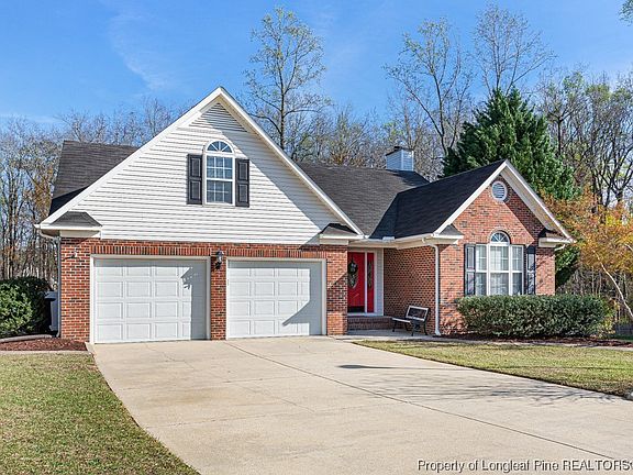Move-in ready, four bedroom, three bathroom home on a cul-de-sac in the Jack Britt school district! This home offers a FANTASTIC floor plan with the primary bedroom suite downstairs and a full bedroom/bathroom suite upstairs. A vaulted ceiling, open living room, and lots of natural light create an airy, open living space at the center of the home. Formal dining room overlooks the backyard. The outdoor space is great for entertaining, with a screened in porch, open deck, and a large, backyard that slopes away from the home. TWO sheds with ample storage space included! Fresh, full home interior paint with a newer primary HVAC, replaced in 2020.