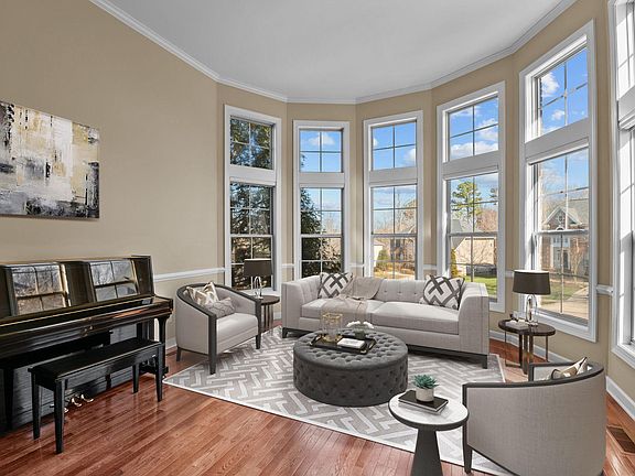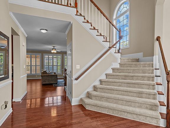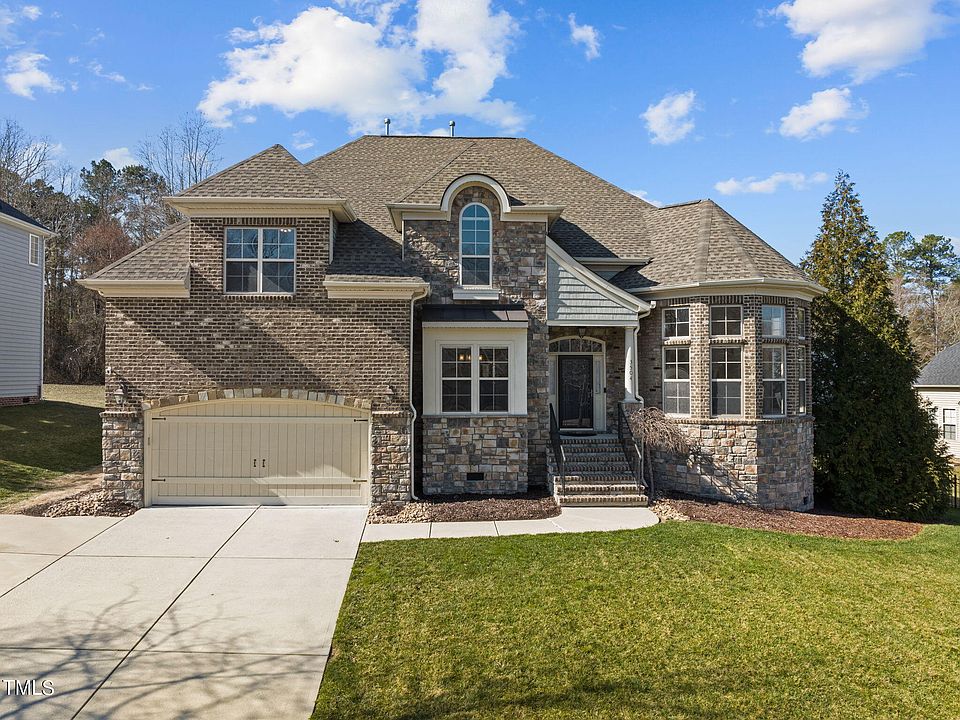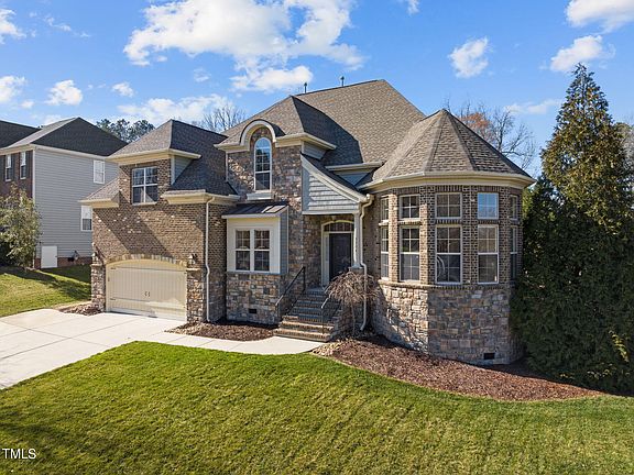 This gorgeous brick & stone facade & elevation captures your eye immediately! The turret room & the varied roofline provide beauty & interest. As you enter you're greeted by a grand foyer with the turret room to the right, the formal dining room to the left & a spectacular split staircase! Look up & you'll see the beautiful balcony which connects to one of the 2nd floor bedrooms. Thru out the home, you will notice details like crown molding, chair rail, true hardwood floors & more--quality craftsmanship & gorgeous traditional style! The gourmet kitchen has everything you need to create amazing meals & entertain guests. The upgraded gas stove will be enjoyed as well as the expansive island with prep sink. Serve family & friends in the breakfast area, at the bar top/pass through or in the formal dining room. The party can continue outside to the enclosed porch, the patio with fire pit or enjoy the spacious fenced in yard. With all of these upgraded spaces & amenities it will feel like a vacation right in your own home! The main floor includes a guest/in-law suite or use as an office. The 2nd floor includes 4 more bedrooms & a spacious step down bonus room. The master bedroom has double doors giving that feeling of luxury! The room has a tray ceiling & it can house large scale furniture or create a reading nook/sitting area. The master bathroom has lovely cabinetry with ample storage, a garden tub & walk in shower plus a huge walk in closet. There is so much flexibility within this home you can easily customize the spaces as you need/wish! The neighborhood is well established with manicured lawns & mature trees. There is a Junior Olympic swimming pool, club house & playground as well as access to the greenway trails nearby. The home includes newer systems, appliances & roof which provide the buyer peace of mind. Come tour this well maintained house & fall in love!