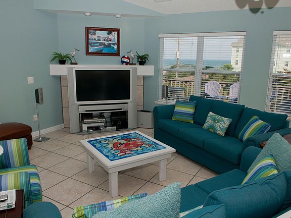 Beautiful ocean views, 2nd row beach access in front across street. Spacious, open, reverse floor plan, great room has tiled floors for easy maintenance, good rental, 2013 new furniture, new carpet, 2014 painted exterior, 2009 new roof. Duplex has been converted to town homes. 2011 new septic upgraded to 4 bedrooms