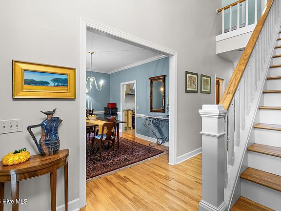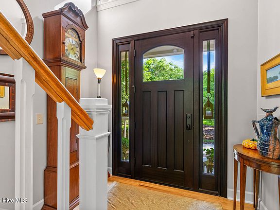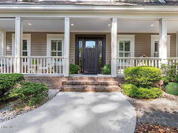 Imagine arriving home each day to a picture-perfect Cape Cod-style sanctuary, tucked away on a quiet cul-de-sac in the sought-after Middle Sound Loop area. As you pull into the driveway, the beautiful trees and manicured landscaping greet you, offering a sense of peace and privacy that's hard to come by especially being just minutes to Wrightsville Beach and Mayfaire shopping. A grand front porch welcomes you, inviting you to slow down and take in the serenity of your surroundings. Inside, you'll find a home that blends classic charm with modern elegance—a space that was thoughtfully designed for both relaxation and entertaining. The heart of the home is the newly renovated kitchen, where khaki cabinets, sleek quartz countertops, and the striking cobalt blue Viking range create an inspiring space for preparing meals. Whether you're hosting a dinner party in the formal dining room or enjoying a quiet breakfast at the eat-in kitchen, this space is as functional as it is beautiful. As you move through the home, the soaring ceilings in the living room draw your eye upward, framing views of the expansive backyard through new Marvin windows. The natural light pours in, creating a warm and inviting atmosphere. The Dover cast iron fireplace becomes the centerpiece of the room, perfect for cozy nights. Step out onto the spacious deck to overlook your private backyard, a tranquil retreat ideal for outdoor gatherings, morning coffees, or simply enjoying the quiet of nature. The first-floor master suite is the ultimate escape. With a renovated master bath that features a luxurious soaking tub and separate shower, it's the perfect place to unwind after a long day. Upstairs, two en-suite guest rooms provide privacy and comfort for family or friends, while the bonus room offers endless possibilities—whether you envision it as a game room, home gym, or even a home theater. With extra structural support to hold a regulation-size pool table, this room is a place where fun and entertainment come to life. Every detail in this home was carefully considered, from the thoughtful placement of windows that frame the natural beauty outside to the impeccable craftsmanship that speaks for itself. It's a home that reflects a lifestyle of elegance and comfortand it's waiting for you to make it your own.