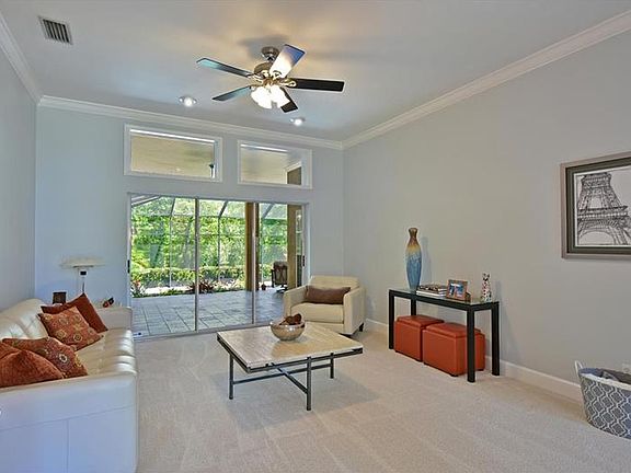 Contemporary Elegance - A Design Masterpiece. Serene setting with stunning preserve views from this updated beautiful pool home in the gated community of River Wilderness. The home offers 3 bedrooms plus a den, 3 full baths and a 2 car attached garage plus golf cart parking or storage. The open foyer entry leads to the formal living room with large sliding glass doors with transom above opening to the lanai. Exceptional privacy with lush tropical preserve surrounding pool. The open formal dining room offers a large arched window with large scale wood blinds and decorative chair rail and moldings. The home boasts 10' ceilings, crown moldings, raised panel doors, 6" wood baseboards, ceiling fans in every room, and new 20" rectified porcelain tile flooring throughout the common areas. The open family room has wood cabinetry and a wood burning fireplace with native Florida limestone cladding. The spacious designer kitchen has a raised breakfast bar, granite counters, wood cabinets, stainless steel appliances, dinette area has sliding doors to the lanai and saltwater pool and heated spa area. The master suite has sliders to the lanai, large walk-in closet, dual vanities, jetted tub and separate shower and water closet. The expansive covered lanai and caged saltwater pool and heated spa overlooks the backyard and preserve. River Wilderness is a golf and boating community very centrally located to Saint Petersburg, Sarasota and Bradenton. No CDD fees and close to major shopping, hospitals and restaurants.