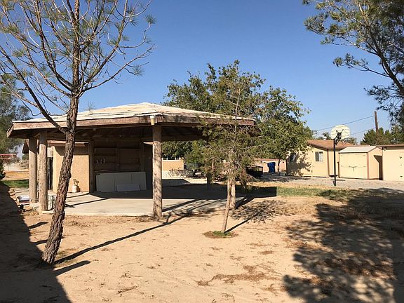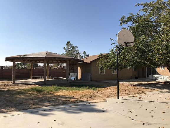Well maintained large property. Mature trees. Owner has done extensive remodeling, new paint, new carpet and fixtures. Gigantic outdoor entertaining area. Three large out building's for storage, large fenced area for horses and a small animal pen. Chain link fence around entire property. Mature trees, lots of room to play. Open desert across the road, so bring your toys! Seller motivated.