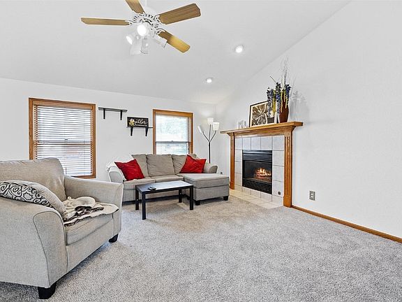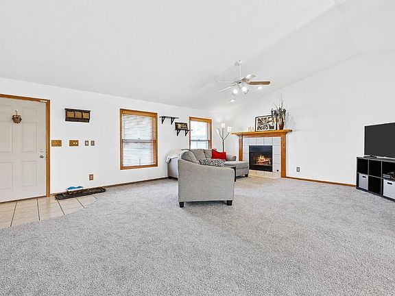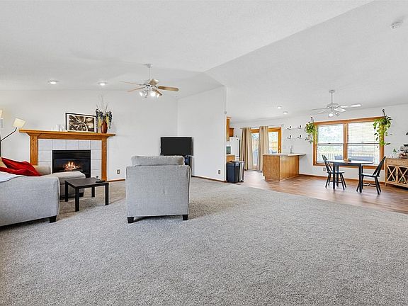 Great friendly location on a quiet cul-de-sac just minutes from lots of shopping and dining. Well maintained ranch home with beautiful new landscaping and a quant little fountain pond along the front walkway. Enter in the front door to a huge living room with a vaulted ceiling, gas fireplace and brand new carpet. The Open concept leads you into the kitchen/dining room with brand new vinyl flooring, beautiful oak cabinets, large breakfast bar, gas range and a slider out to the massive deck that was just re-stained and has privacy fencing from the neighbors. The main floor also includes 2 family bedrooms with a full main bathroom and the primary bedroom with its own full bathroom. When walking in from the nice sized garage you enter a large mud room with laundry (washer/dryer included) and the steps down to the massive lower level where you will find another full bathroom and a great entertaining area with a projector hanging from the ceiling that will be staying. This great home is just waiting for the next owner to love it even more.