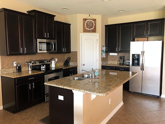 Beautiful, move in ready, well maintained, 5 bedroom 3 bath home located on an oversized premium lot in a community that has no CDD, LOW HOA , AND A COMMUNITY POOL! This is an entertainers paradise with an open floor plan so no one feels left out. If you like to cook enjoy the kitchen which includes stainless steel appliances, granite countertops, plenty of storage, and a walk in pantry. If you need space this home will not disappoint in addition to the ample amount of bedrooms this home has: plenty of storage( with multiple walk in closets), an office/den space, AND an upstairs loft. Enjoy your sunset water view on the back porch or take walks on the plentiful sidewalks with beautiful scenery . With this home only a short walk to the community pool and playground there is no need to be bored this summer. This home is located close to the Floridas Turnpike and only a few minutes into town. Looking to build a pool? Not a problem since the lot is .33 of an acre, one of the largest lots on this culd-de-sac. Home was built by Ryland homes and comes with a 1 year home buyers warranty