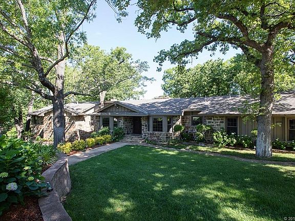 Immaculate custom home nestled on lush quiet cul-de-sac in Jenks SE! Nearly acre lot boasts expansive decks, gazebo & exquisite mature gardens. Granite kitchen & baths, extensive hardwoods, tongue & groove ceilings, 4 generous living areas, 2 dining, handsome office with built-ins and fireplace, exercise room with sauna (not warranted), 4 fireplaces and carpenter's workshop with vacuum system. Master and guest suite on main level plus 2 additional Bedrooms and 2nd Living/Game Room with granite wet bar and fireplace down.