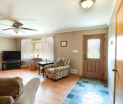 Vacation at home everyday! Ranch style floor plan with stunning hardwood floors, updated bathrooms, screened porch, light and bright Living Room, Family Room with fireplace, huge detached garage, stocked pond with a fishing dock, additional Weaver Amish Built Cabin w/ a loft and skylight, a 12' x 20' shed features electric and window. Huge Weaver Amish Built Garage is over 1500 square feet, with 12' high walls, full drywall and paint, electric an extra heavy concrete base, and large garage door and security system. Large private driveway, and tons of space and privacy. Close to everything Polaris has to offer, including shopping and freeways!