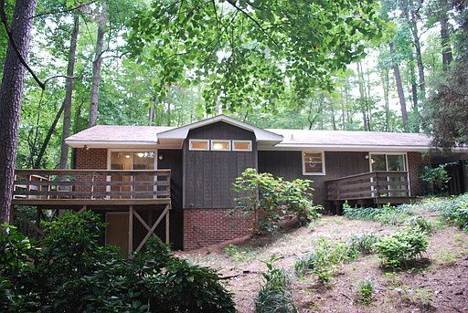 Lots of Privacy in perfect neighborhood! Spacious 3bd/2bth one-story Ranch Home with hardwood floors. Safe, quiet subdivision close to Glenwood Avenue, I-40, Beltline, Blue Ridge Road, Ridge Road, RDU Airport, Crabtree Valley Mall, Bikeway, Rex Hospital and 3 City of Raleigh parks. Attached carport provides sheltered, immediate access from car to house. Low-maintenance wooded front and back mean privacy and no grass to mow, ever! Master bedroom with sliding glass doors provides view of trees and accesses spacious raised deck. Master bath has LARGE whirlpool bath area in addition to separate shower. Dining room w/ sliding glass door accesses deck for easy outside entertaining. Built-in microwave, flat electric cook-top, dishwasher. Built-in sliding drawers for easy access to pots, pans, utensils. Built-in book shelves for small library in hall area. Built-in shelving and desk area in one bedroom. Utility room for washer, dryer, freezer, storage. Programmable Heat Pump/AC and attic fan provide low-cost heating/cooling. Covered lit patio provides shaded, all-weather outdoor bbq/entertaining area. Fenced potting/gardening workspace with cabinets and work bench. Under-house storage area and attic. Underground utilities. 5 min. walk to City Park with 4 tennis courts (lit), walking trail, bike trail, and basketball courts--all surrounded by serene woods. 3 min. drive to City of Raleigh recreation center with indoor and outdoor basketball courts, baseball fields, recreational programs. 5-min. drive to City of Raleigh outdoor swimming pool.