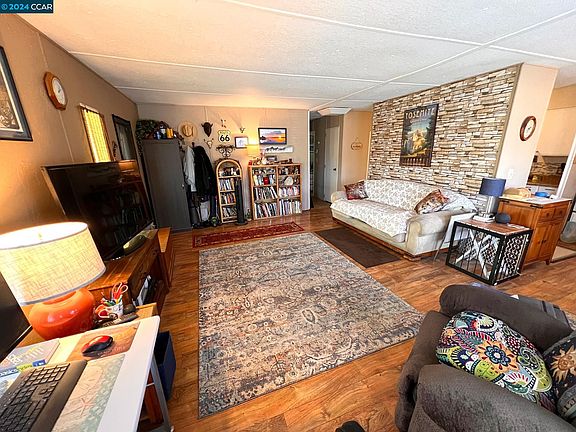 Take a look at this meticulously maintained , 1970, 1,032 sq. ft. residence, featuring 2 bedrooms and 2 bathrooms, nestled within the charming Santiago Mobile Home Park in Bethel Island—complete with a refreshing pool! This lovely home showcases a modernized kitchen and vinyl flooring that flows seamlessly throughout the space. Enjoy the outdoors on the spacious deck, while the backyard offers convenient storage options, including work benches, electrical, and A/C that will definitely be a bonus to have if used as a workshop! The bathrooms have also been updated, ensuring a fresh and inviting atmosphere. Recently painted on the exterior, this home is perfectly situated just minutes away from the picturesque California Delta. You'll have easy access to a variety of outdoor activities, including fishing, waterskiing, jet-skiing, and boating, all set against stunning natural scenery. The listed space rent of $915 conveniently covers essential services such as water, garbage, and levee maintenance. Don’t let this opportunity slip away—this affordable gem is waiting for you!