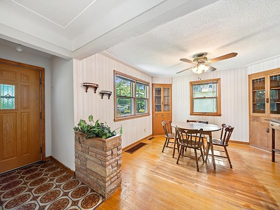 You will be wowed with the lot size and amount of space this 1 1/2 story has to offer. The main floor features a living room with fireplace, hardwood floors large windows, dining room with built-ins cabinets, large kitchen with plenty of cupboard/counter space, dual vanity sinks in bathroom with updated surround in bath and a large primary bedroom. The upstairs is dormered out and features two large bedrooms with plenty of closet space and a bonus 10x10 room for a walk-in closet/office. The basement features another fireplace with a family room that is 25x12 and a storage area that is roughly the same size. The garage offers more storage space in the attic and a workshop. Lucky for you the water heater, furnace, AC unit, and the roof are newer. Just 2 blocks from Hy-vee and 5 blocks from North Memorial you can't beat the location. Put your final touches on what could be your most prized investment!