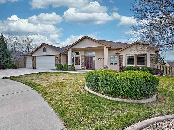 Gorgeous custom home in the Knolls. Situated at the back of a private cul de sac. beautiful views of the Colorado National Monument from a large covered custom tile patio with a fan to move the warm summer air. When you walk into the open foyer and dining room you will be greeted with natural light streaming through the custom Plantation shutters throughout the main living areas of the home. Very creative flex space and wet bar off the Livingroom. Large primary suite and 5 piece luxurious bath and ample sized closet with access to the covered patio. 2 other comfortably sized bedrooms and full bath. 3rd bath is a half bath with faux textured rich colored walls. Oversized 3 car garage and perfectly landscaped fenced yard. Unbeatable in the desirable Knolls Subdivision in the North area of Grand Junction