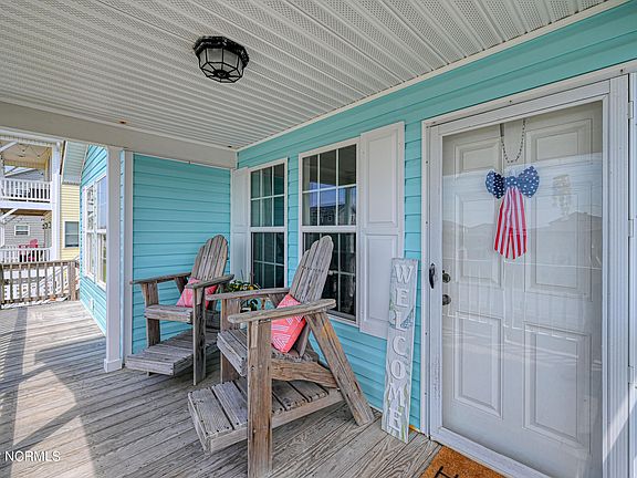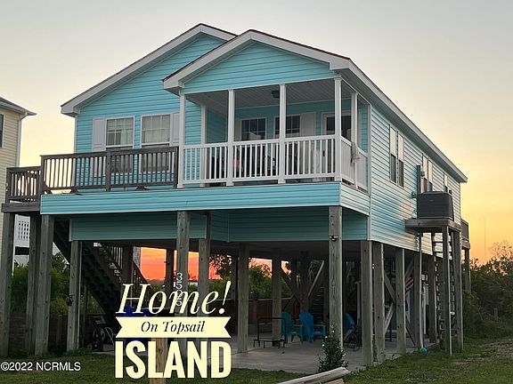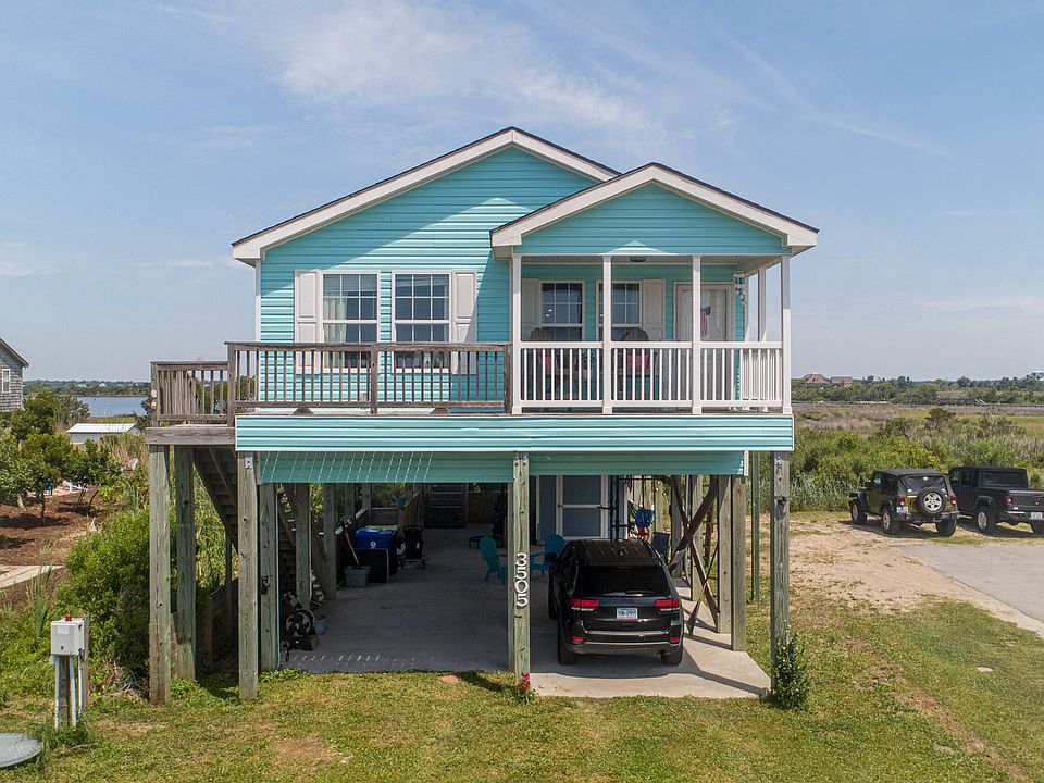 Please park under the house. This beautifully updated and renovated beach home with attractive flood insurance premium which may be assumable. As you walk up the stairs you'll be amazed by unexpected view of the turquoise blue ocean waters. Spend your days relaxing under the covered porch with a non-stop breeze that makes even the hottest days cool. Walking through the front door you have sight lines all the way to the back of the home where you will be surprised by yet another gorgeous view of water. Whether you eat dinner at your dining table or are in the front bedroom relaxing or working from home, you can enjoy the ocean view. The interior is painted a beautiful sea foam blue that gives you the feeling of tranquility and peace. The large kitchen has tons of storage and cabinets and brand new oven, microwave and dishwasher and a like-new french door refrigerator that are all stainless steel. The master suite is very large for this island and has a walk-in closet, updated vanity and mirrors, large soaking tub and walk in shower. The spare bathroom has an updated vanity, mirror and lighting with a shower tub combination. The laundry room has a new stackable washer and dryer combo and plenty of room for storage. New exterior paint and the back patio has 180 degree unobstructed views of the sound and is the perfect spot to enjoy dinner while watching the pink and purple sunsets. Under the house is a cute craftsman style storage shed that is only 1 year old. There is plenty of room for parking and entertaining.The lot is 50 X 200, which is a generous size considering many surrounding lots are only 50 X 100. Come check out this slice of heaven and the picturesque views of the ocean and the sound from all the rooms in this home. See current flood premium in docs.