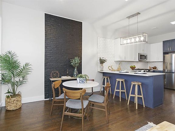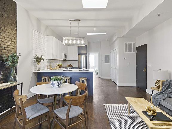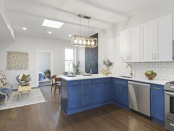 Brooklyn-chic urban living is brought to spacious Jersey City Heights with this well laid-out and thoughtfully finished 2 bed, 2 bath safe haven. Bright skylights showcase excellent design features like hardwood floors throughout, exposed brick accents, brass fixtures and quartz countertops. Bathrooms boast beautiful blue herringbone and penny tile, while the master suite and extra bed are flooded with light, excellent storage and quality windows. Beautifully located in the heart of Jersey City Heights, this sought-after neighborhood offers everything for urban and suburban needs, including walkability to essential stores, abundant parks, excellent schools and easy NYC access.