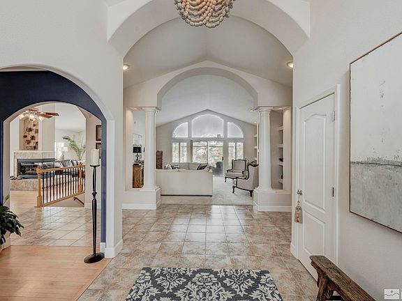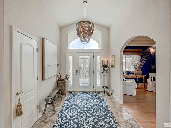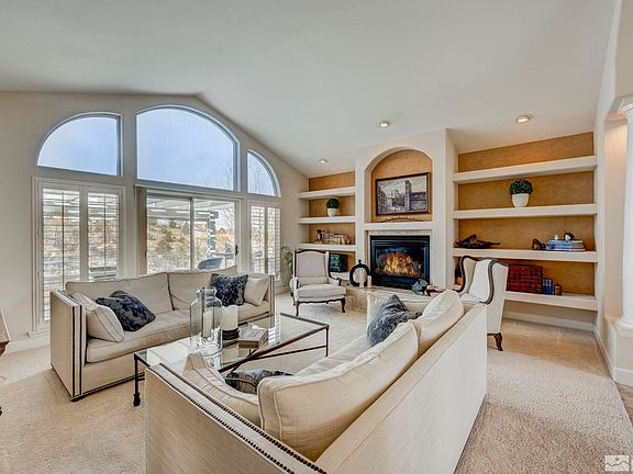 This quiet custom home is well planned. The primary suite is on the main floor complete with a gas fireplace, spa like bathroom, and his/her walk in closets. Large open living spaces are enhanced by a private office and separate dining room. This flows beautifully into the huge custom kitchen with granite counters, SS appliances, breakfast nook, and a walk in pantry. The large 1 acre lot has mountain and valley views, mature landscaping, and two water features. 3 car garage houses a workshop and storeroom., The home is located in a unique part of Reno that is very spacious and quiet as all the homes are located on large lots. You have all the advantages of city living with a little country added for flavor. The home offers great views through large expansive windows that let in just the right amount of light. The well laid out custom kitchen is a cook's dream. You can dine informally at the breakfast bar or breakfast nook. Or you can enjoy the formal dining room. The walkout ground floor opens onto the comfortable back yard with a large water feature and covered patio. There are three bedrooms downstairs, one of which is ensuite. The is a rec room, wine room, and plenty of storage.