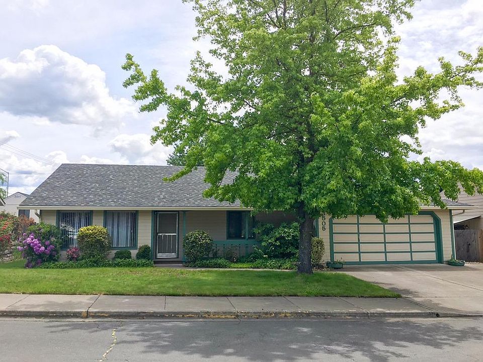 Welcome to this great home in East Medford. This 3 bedroom 2 bath home has both a living room and a separate family room. The kitchen is open with lots of storage, a new gas range, new flooring and has a large island. The home has laminate flooring throughout the main living areas and updated carpet in 2 of the bedrooms. Both the front and back yards are fully landscaped with mature trees, sprinkler system and storage shed in the back. The back yard also has a large covered patio perfect for BBQ's. The 2 car garage has lots of extra storage and there is RV parking area on the side.