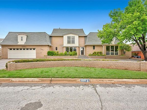Here is an incredible opportunity to live in a truly retro inspired Edgewater home on a greenbelt lot!This tri-level home features a massive fully finished basement complete w/a full bath and a balcony upstairs overlooking the green pasture that stretches to Lake Hefner!The charm is endless w/arched entryways, 3 brick fireplaces, oval windows, original built-ins & a working dumb waiter to deliver items to the other floors.The kitchen is equipped w/built-in appliances & loads of storage.Vast windows make the rooms feel open & bright.The master is downstairs w/1 addtl bedroom & features an elegant ensuite w/an updated glass surround stall shower & a sizable walk-in closet.Upstairs are 6 very large bedrooms all w/ Lg closets & 2 full bathrooms.One bathroom has a long 3 sink vanity.The basement is 1650 sqft & is set up like a game room w/ a working wet bar.It also has a bunker style storm shelter & 2 other workout/bonus areas. OK weather is truly amazing out back in the finished sunroom!