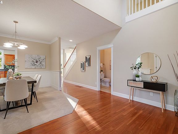 Step into your inviting retreat nestled in the heart of Bonny Slope! This beautiful 5-bedroom, 3.5-bathroom traditional home welcomes you with an open floorplan, soaring ceilings, and abundant natural light dancing on newly refinished gorgeous hardwood floors throughout the main level. Designed for gatherings, it boasts a formal living room and dining area, perfect for entertaining loved ones. Unwind in the family room, complete with a cozy fireplace, built-ins, and expansive windows framing picturesque views of the serene surroundings. The gourmet kitchen awaits with stainless steel appliances, granite counters, pantry, and a delightful eat-in area, ideal for casual meals and lively conversations. Step outside onto two expansive decks (one on the main, another on the lower level), where lush greenery and stunning sunsets await. Downstairs, discover a second family or bonus room, another fireplace, a bedroom, full bathroom, and a versatile office/den, all adorned with additional built-ins for your convenience. Upstairs, find four more bedrooms, including a primary suite offering a spa-like bathroom and a walk-in closet. Another full bathroom caters to the remaining bedrooms. With a brand-new roof (2024), central vacuum system, and AC for those warm summer days, comfort is assured year-round. Lots of storage throughout, including a sizable storage room/area (finished and unfinished) on the lower level, providing ample space for all your belongings. Easy access to Nike, Intel, top-rated schools, shops, restaurants, parks and so much more. NO HOA!