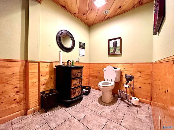 Fort Payne-4 bedroom 3 bath Home. Enter into the living room with laundry and half bath with beautiful wood ceilings and recessed lighting. A few stairs up to the second level offering formal dining, kitchen, primary suite. Enjoy the room with this oversized kitchen with island, vaulted, wood ceilings, island, and pantry! Primary suite offers bath and walk-in closet. Up a few more steps will carry you to the 3 spare bedrooms and spare bath. Home boasts large swimming pool with pool house with bath, extra lot with storage building. This home is ready for entertaining with plenty of yard! First time offered on the market $280,000