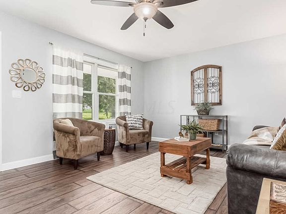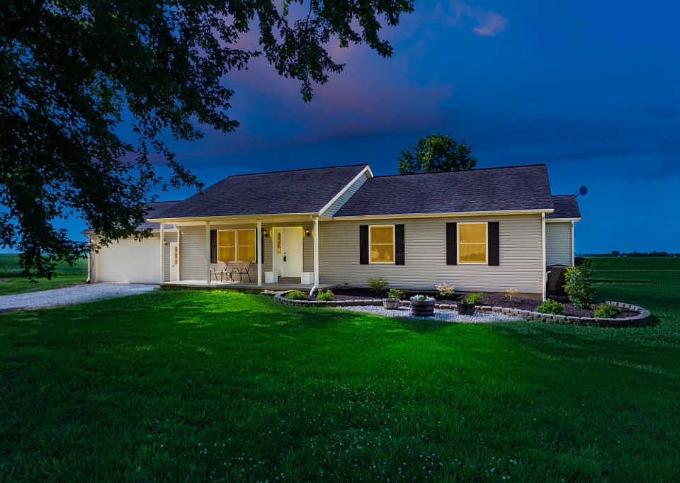 Ignore the age of this home; virtually everything is new since 2013. Country living - beautifully updated. Ranch on 5+ acres has full front porch. This home features move-in ready updates: brand new wood-look vinyl flooring in living room, eat-in area and kitchen. Kitchen with granite countertops, SS applainces, tile backsplash, sliding glass door to brand new concrete patio. Three bedrooms including owner's suite with walk-in closet, private bath with tub/shower single sink. Guest bath with single sink, tub/shower. Full, Fin LL with wood look vinyl flooring, kitchenette with sink, dishwasher and refrigerator. Play room, bonus area, recreation room and storage = over 1000 SF of additional living space. Sump Pump and Battery backup up 2015, well/pump/wiring, etc. 2013