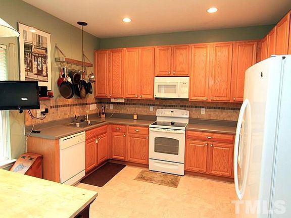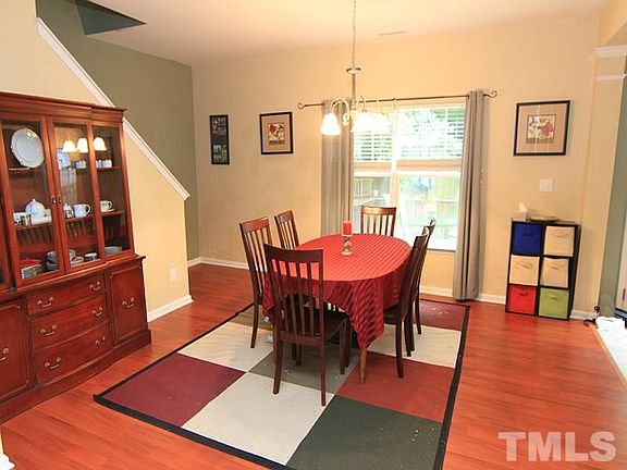 Charming four bedroom home in North Raleigh with private fenced backyard. The large family room and dining room are great for family gatherings and entertaining. The kitchen has tile backsplash and tall kitchen cabinets and a kitchen island that can be used as a breakfast bar and has extra storage. The laundry room has additional cabinets for storage and there is storage shelving in the garage. The tree house will convey. Home has easy access to I540, US 1 and Highway 401.