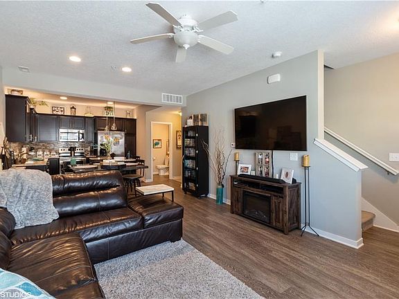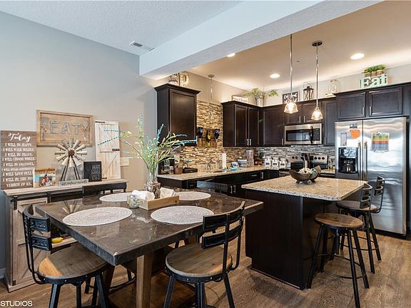 Beautiful, centrally located Grimes Townhome! This custom Townhome has a laundry list of upgrades including, upgraded carpet, hardwood throughout the main level, upgraded stainless steel fridge, upgraded backspalsh, granite countertops, additional lighting throughout, 6' trim throughout, pulls and knobs on doors and drawers, upgraded faucets, and blinds throughout! This thoughtfully designed layout gives you tons of space on both levels with a great open concept on the main level with bountiful cabinet and counter space in the kitchen! Upstairs has laundry room, a great flex space as you come up the stairs and two nice sized bedrooms. The Master has a trey ceiling and double closet's for tons of storage and its own Ensuite! Schedule your showing today!