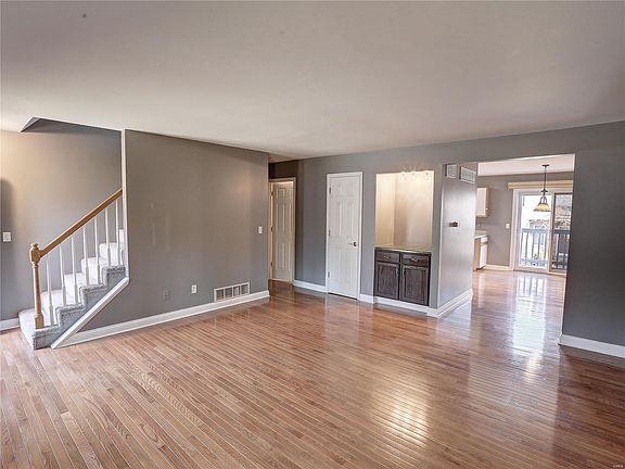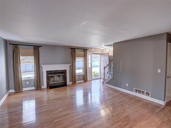Meticulous kept condo in the sought-after Sherman Meadows community, located in the heart of St Charles County. Main level features a large living room with fireplace, convenient dry bar/coffee station, open kitchen, dining room, and half bath. Beautiful hardwood floors with a maintenance free deck off the kitchen that brings in loads of natural light. The first floor also has a laundry room for added convenience. The complex has a pool, club house and tennis courts. This townhome has been very well maintained and newly painted and carpeted. Upstairs you will find two bedrooms and each with their own private full bathroom and walk-in closets. All new cozy plush carpeting and fresh new paint throughout. Downstairs opens to a bonus room for extra storage and an attached oversized 2 car garage for added security. Don't wait on this one as the condos in this area sell quickly.