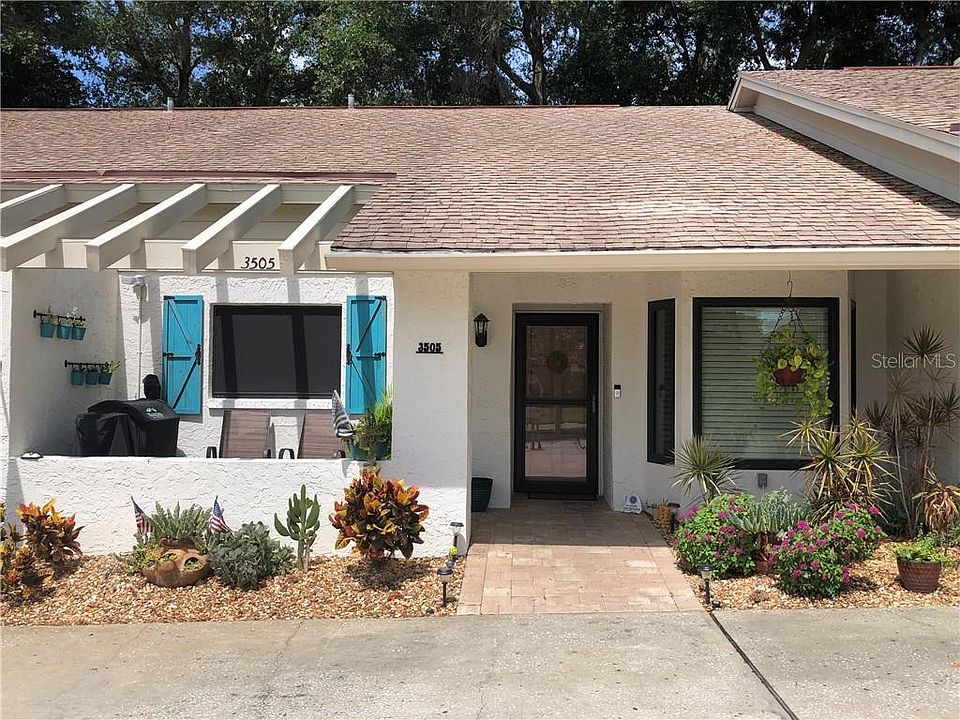VERY MOTIVATED SELLER !!! Are you looking for Maintenance- free living? Well, you have found the perfect place. Enjoy the Florida lifestyle in this updated and meticulously maintained unit. Situated on the 2nd Fairway of the Championship Course, this unit features an open floor plan. The kitchen features a breakfast nook and has ample storage with the updated cherry cabinets and stainless steel appliances. Enter into the Living/Dining room with vaulted ceilings, skylights and beautiful wood laminate floors. There is also a lovely screened porch with brand new vinyl windows and tile floors that can be accessed from the Living room and the Master bedroom. The large Master Bedroom also with wood laminate flooring has an en suite bath with new glass shower door and vanity. The walk-in closet has good storage with the built-in closet system. The Guest bedroom also with wood laminate floors has been redecorated with fresh paint, crown moulding and a closet system with lots of storage space. The second bath has been updated with a custom wood encased bathtub and new shower door. The front porch just had new pavers installed and can easily fit your grill and a couple of chairs or a bistro set. Seven Springs is a very active golfing community with lots to do. There are 2 eighteen hole courses, two swimming pools; one which is heated. A full service restaurant and lounge, tennis courts and Bocce court, a library, Men's and Ladies fitness rooms and 24/7 Manned security. Make an appt. to view this really sharp unit today. MAKE US AN OFFER!!