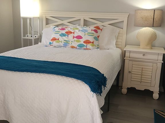 Unit C has been freshly painted and decorated. It has a queen bed, sitting area with sofa, and private bathroom. Located in a gated community at IMG and close to the beaches. A beautiful pool is downstairs ready for you to enjoy. This unit has a minifridge, coffee pot and microwave. Minimum rental is 3 nights at 150.00 per night. Length and time of year prices may vary. For all rentals more than 30 days, there is a $60.00 per month utilities charge. Property tours are only available for long term leases. Price listed is for annual annual lease. $60 Utilities fee. No smoking. $1500 plus utilities fee on annual lease. contact for monthly rental rates.
