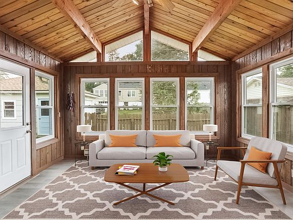 Want to live across from a park? This stunning mid-century home nestled on the hill across from Lakeview Terrace Park and Crystal Lake is the one for you! Featuring a fantastic 4 season sunroom with vaulted ceilings and walls of windows, 2.5 garage spaces for all your toys, a new washer, new dryer, and new central air. Other updates include newer windows, high efficiency furnace in 2020, gas fireplace, 30+ year shingles installed in 2011, granite kitchen counters, tile backsplash, & a completely fenced backyard. More details you’re sure to appreciate are the cove ceilings, vintage tile, pocket door, beautiful hardwood floors, separate dining room, built-in shelves, linen & coat closets, laundry chute, and a cedar closet! Imagine walking down your street a few paces to buy fresh fruits & veggies from the Farmers Market! Don’t miss the outdoor patio off the sunroom, perfect for grilling in your ideal backyard! 3 blocks off Theo Wirth Parkway. This one has it all!