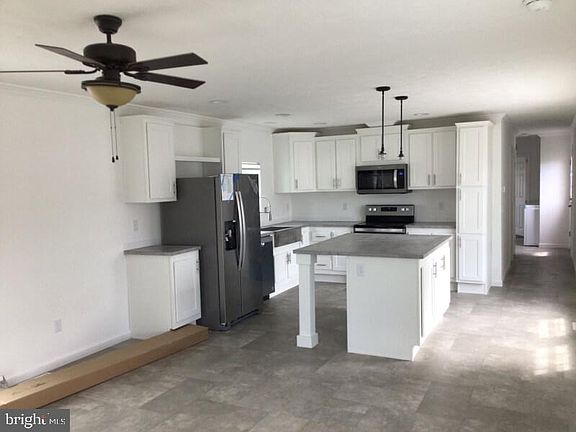 The full covered porch makes this home. Featuring open concept living in a smaller model. The beautifully laid out kitchen has stainless steel appliances, a garbage disposal and a large island with beautiful pendent lights and plenty of storage. With too many cabinets to list you won’t have problems finding a home for all your dishes and cups. With a large bathroom, ceiling fans in both bedrooms and the living room and mini blinds on all windows. This home also includes a washer and dryer. If you’re looking for a smaller home all on one floor this model may be the one for you