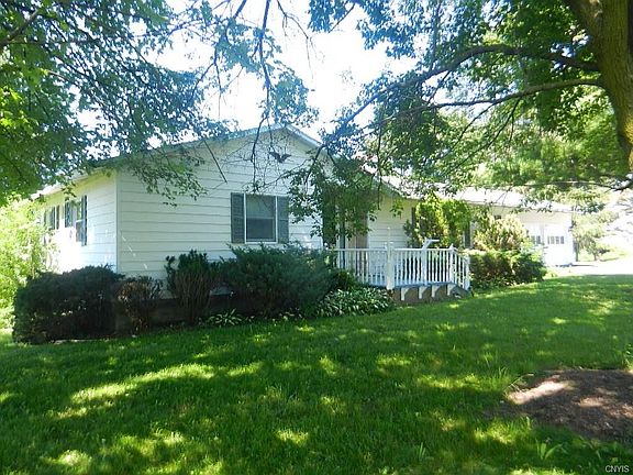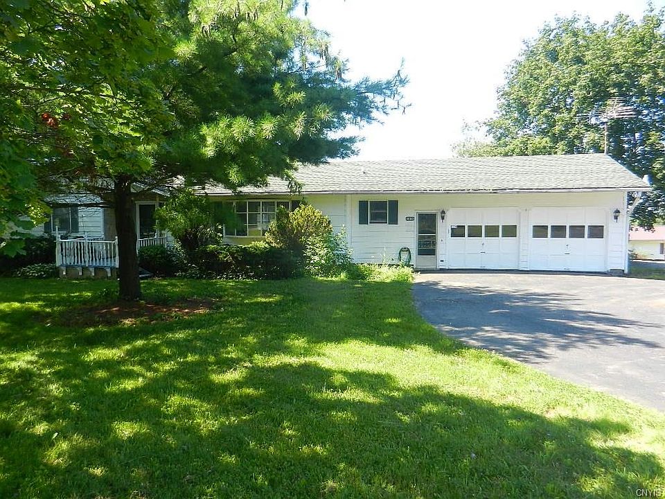 Escape to the country and enjoy one level living in this lovely ranch situated on 1.8 acres featuring spacious living room with flagstone entry, decorative planter and wood burning fireplace. Fully equipped large eat-in kitchen with ample cupboard and counter space. First floor laundry includes washer and dryer. Pretty sun room with sliders leads to spacious deck with awesome views of skyline. Could be modified for additional 3rd bedroom. Full walkout basement boats a recreation room and huge workshop area. Great location between Auburn and Skaneateles---Public water, newer roof