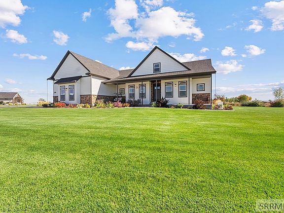 Welcome to this stunning custom home on 5 acres in Rigby—designed for comfort, beauty, and unforgettable gatherings. With 4 spacious bedrooms, 3 bathrooms, an office, and an enormous deck overlooking the beautifully landscaped property, this home offers the perfect blend of function and luxury. The heart of the home is a chef's kitchen featuring custom cabinetry, a massive granite island, and elegant finishes ideal for entertaining. The great room showcases soaring windows and a floor-to-ceiling fireplace, filling the space with natural light and warmth. The master retreat is a peaceful haven with vaulted ceilings, private deck access, and a spa-inspired ensuite featuring a soaking tub and walk-in shower. Downstairs, you'll find expansive living areas, a built-in playhouse, and an oversized cold-storage room ready for all your needs. With meticulous craftsmanship, open-concept living, and breathtaking outdoor spaces, this property captures the best of Idaho living—quiet, private, and absolutely beautiful.