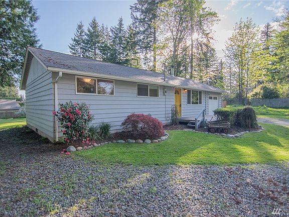 Adorable three bedroom 1 full bathroom rambler on almost a half acre lot! Hardwood floors and fresh paint throughout. Enjoy privacy on this level lot at the end of shared driveway. Partially fenced. Multiple outbuildings and woodshed. Attached one car garage, as well as detached carport. Approximately 15 minutes from Everett Boeing plant. Minutes to Hwy 99 and 525. All appliances included!