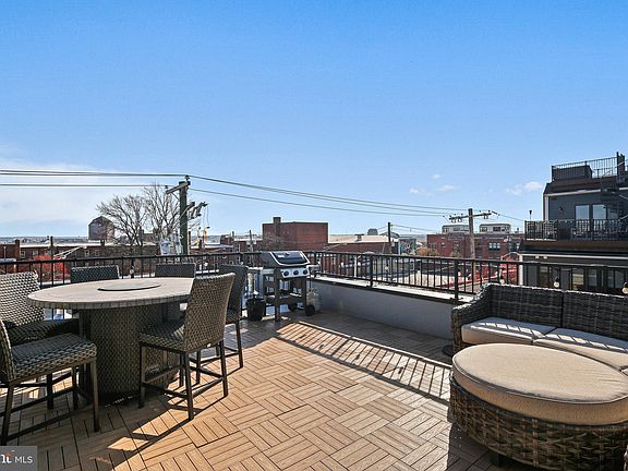 Welcome to this Breathtaking, JCole Custom Build Home with over 3500 sq feet of living space, as well as a Rooftop Deck, Yard, Garage with EV Charging Station and 2 additional Parking spaces. This Bright & Airy home features 5 Bedrooms and 4.5 Baths. Easily convert a bedroom into a Home Office, Exercise Space, or additional Entertainment or Game Room. Elegance abounds with the use of mixed materials including wood & iron stair railings, white oak wide plank hardwood flooring, Quartz waterfall counter, ipe decking, mixed-shape ceramic tile including subway & hexagon tile and sliding barn doors. Note an abundance of eye pleasing subtleties including gorgeous hardware throughout the home. No detail was missed for convenience and comfort. Enter into the covered front porch to the first level, featuring a bedroom with ensuite, elegant stair case, Bedroom 2 (or possible Den or Home Office) and the bright All-purpose Room with two entrances from the rear yard including sliding glass doors and cabinets, countertop and Beverage sink for convenience when hosting family and friends. Continue to the Main Level with Living Room, Dining Room, Kitchen, Breakfast Room and convenient half bath. The Gourmet Kitchen features stainless steel appliances including range hood, gorgeous backsplash, and exquisite island with a breakfast bar. The third level features Two Bedrooms at either end of the home, each with ensuite and walk-in closets. Last but definitely not least, is the fourth level including Bedroom 5 with ensuite and a Showstopper deck with Ipe decking tiles and amazing views of the city. Close to Commuter routes, Dining, Shopping and just moments away from Patterson Park, This home is an Entertainers Dream! Schedule your viewing today!