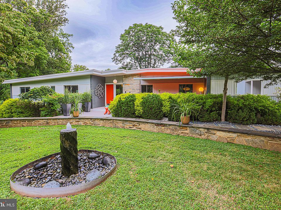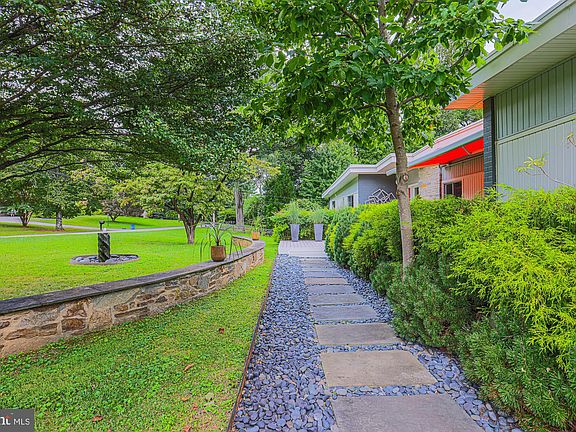 A Mid Century Modern (MCM) home is a remarkable blend of style and functionality. With 5 bedrooms and 3 full baths, it beautifully showcases the essence of MCM design, featuring iconic elements reminiscent of renowned designers such as Herman Miller, Knoll, and Wolfgang Oehm. Expansive glass walls create a seamless connection to the outside. The living room opens to a large deck, offering stunning views of the inviting heated pool, complete with a whirlpool. The kitchen is a standout feature, having been highlighted in Chesapeake Home Living magazine. It boasts solid white oak cabinets, designed with two work triangles, an induction cooktop, double ovens, and a low-placed microwave. French doors lead from the kitchen to a decked patio equipped with a propane grill, outdoor dining, and easy access to the pool. Every corner of this home is thoughtful, from the composite decking to the custom smooth black stone river rock incorporated into the walkways. Attention to detail was paramount. Natural light floods into the outdoor dining area through an opening in the exterior wall. No need for window coverings with built-in privacy of custom windows and invisible screens. Double lot is fully fenced for privacy and security. It also features an adorable “chicken coop” and a storage shed. The landscaping is exquisite, showcasing mature, deer-proof plants, including a rare yellow magnolia tree. For added charm, a contemporary water fountain graces the front yard. Practical features include a carport with a workshop or studio, as well as multiple access points to the pool from different levels of the home. A bright orange retractable awning provides a cozy outdoor sitting area, further enhancing the outdoor experience. Perfect for those seeking a turn-key MCM gem, this property is ready for September occupancy, inviting you to move in and start living the Mid-Century Modern lifestyle.
