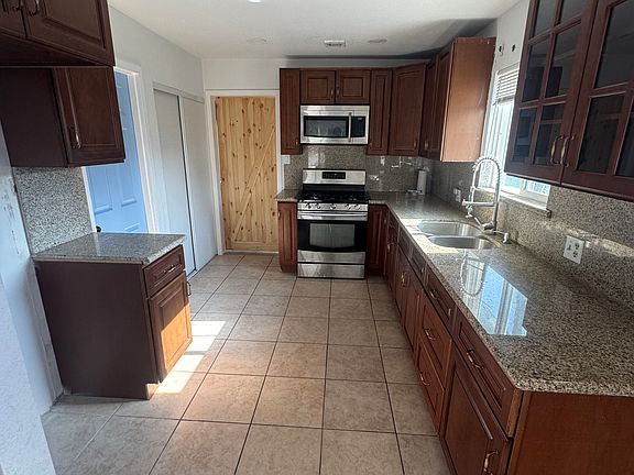 Discover this immaculate 3-bedroom, 2-bathroom residence, brimming with high-end upgrades! This home boasts a brand-new roof, stylish new flooring, and an energy-efficient A/C unit, ensuring modern comfort and sophistication. Benefit from substantial energy savings with installed solar panels, and enjoy the ease of low-maintenance landscaping courtesy of the sprinkler system. With abundant storage solutions throughout, RV parking, and a meticulously designed front and backyard, this property stands out as a truly exceptional find. Don't miss your chance! For pet extra deposit $1000 , covered stove , microwave ,