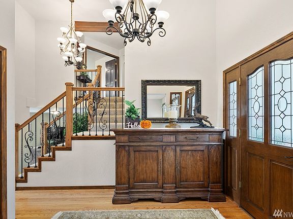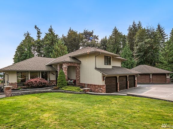 Stunning, well cared for home w/ captivating views,on 1.72 AC! Formal living & dining Rm. Stainless steel appliances, corian counters.Tons of cabinets & space for informal eating off kitchen. Spacious MB suite. Lower level has lg. family room w/ huge bonus room (4th bedroom),3/4 bath & office alcove. Custom wrought iron staircase. Hemlock wrapped windows.Outdoor space an entertainers dream. 3 car attached/ 2 car detached gar. Heat pump 2yrs, Furnace 4yrs. 50 yr comp roof, AC. Floorplan attached