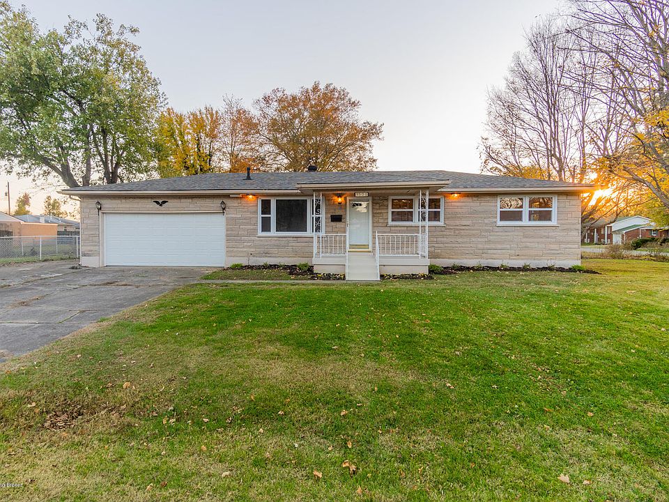 Hurry to see this completely renovated, 3 bedroom 2 full bath Bedford stone ranch on a huge corner lot in a great neighborhood! Everything new; ready for your furniture! Very bright with lots of natural light, fresh paint throughout (including trim and doors; ceilings re-textured), and beautifully refinished original oak hardwood floors in living and dining rooms, hallway and bedrooms (new LVT flooring in kitchen and baths). Freshly painted front porch to welcome you, opens to the generous size living room with an awesome stone fireplace (one of two)! Dining room complete with pantry, leads to an all new kitchen featuring granite counters, soft-close cabinets, and stainless appliances. Main level full bath (ceramic tile tub surround) gutted to the studs; totally new! Head downstairs (new basement staircase!) to the full basement with a brand new, 2nd full bath (including double vanity) and a 2nd stone fireplace! Here's what else is new: roof, windows, furnace, central air, ductwork, new plumbing supply and sewer lines from the street in, all new interior plumbing and fixtures, water heater, new electrical panel, new basement wiring (some new on main floor), plugs, switches, light fixtures, door hardware. Newly painted attached 2.5 car garage with new overhead door. Fully fenced yard with attached storage shed. A fabulous total home makeover! See to appreciate, but don't delay!
