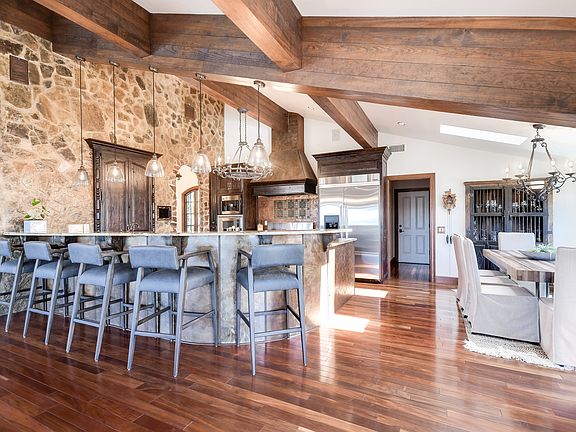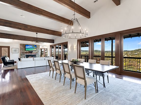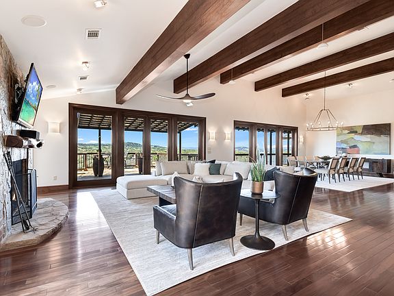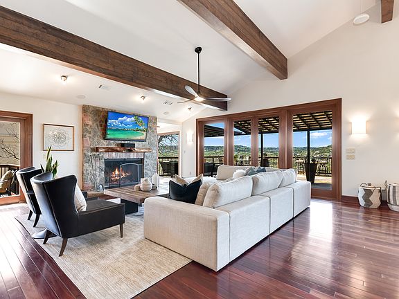 This breathtaking Mount Bonnell home is perched at the summit of the mountain providing panoramic views of Lake Austin and the expanse of the Hill Country. Home to author James Michener while writing his epic novel Texas, you'll understand immediately how the broad blue skies, serene waters of Lake Austin, and the rolling green hills visible from every window set the scene for his masterpiece. Guests will be amazed as they enter, moving immediately to the living room wall of windows to marvel at the view of boats traversing the water and the evening sunsets over the lake. Ultimate Austin Lifestyle Home Designed as the ultimate entertaining home, there is room for a crowd with spaces for indoor and outdoor cooking, lounging, playful splashing and serene soaking. The main floor is expansive; anchored by a generous 2,500 bottle circular stone wine cellar and intimate lounge, the open living and dining rooms frame sweeping views. A negative edge resort-style pool and spa surrounded by rich IPE decks are the centerpiece of outdoor living. A tranquil waterfall flows into a second pool below surrounded by a tanning deck suspended over the lake. Additional socializing space is provided in the media room and bar.
