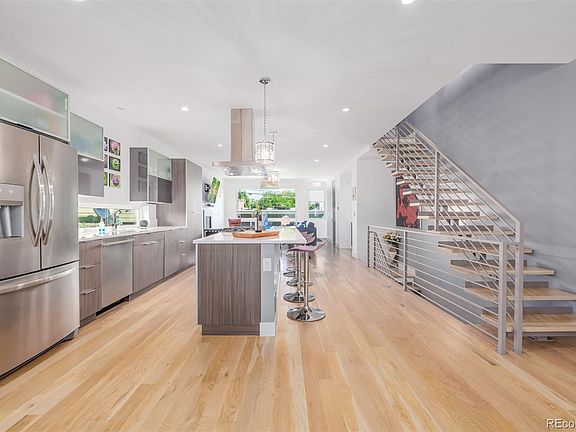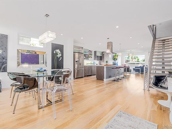 Wow, just wow! Fall in love with this gorgeous four-story townhome situated in one of Denver's hottest neighborhoods! This beauty displays a charming curb appeal with mature shade trees and lush lawns. Be impressed by the immaculately designed interior that boasts tall ceilings, beautiful wood flooring, and recessed and striking light fixtures, illuminating the great floor plan. The sizable living room enjoys a romantic fireplace! Meticulous attention to detail is presented in the gourmet kitchen with sparkling stainless steel Bosch appliances, polished quartz counters, lovely wood cabinetry, and a large island with a breakfast bar, perfect for casual dining. Venture to the upper level to find a carpeted primary retreat bathed in natural light through the picture-perfect windows, a sophisticated ensuite with dual sinks, a step-in glass shower with dual shower heads, and a walk-in closet. Another two bedrooms on second floor share a Jack & Jill bathroom, fourth bedroom in basement features a Jack & Jill bathroom for access to cozy basement living room. The third-level flex space has a wet bar, a wine cooler, and rooftop access with awe-inspiring views of downtown. You'll love the fully finished basement, highlighting a family room with a stone wall, a custom granite bar, bar dishwasher, bar fridge, and a temperature-controlled custom wine cellar, excellent for wine enthusiasts. The entire home boasts custom roller shades on every window. The private backyard invites you to relax in the refreshing hot tub! With all conveniences within easy reach, this incredible abode truly epitomizes the essence of location, location, location! What's not to like? Own the home meant for you!