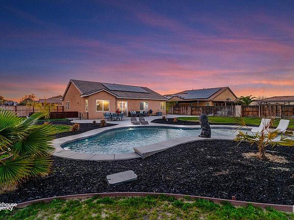 A half-acre lot, plumbed for an ADU in the prestigious gated community of Tallus Ranch is luxury living at its finest. This stunning 4-bedroom, 2-bathroom home faces east/west and tons of boasts upgrades. Enjoy the spacious open floor plan, tile floors, gourmet kitchen with modern finishes, a luxury gas stove, and bright living spaces. Outside, a custom-built salt water pool beckons for leisurely dips, while a detached shed and RV parking offer ample space for hobbies. Low solar payments with an insanely low TrueUp wrap this home up with a beautiful bow. Schedule a showing today and make this dream property yours