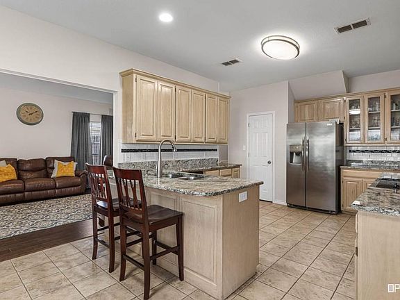 Step inside the realm of luxury and elegance with this custom-built residence located in the sought-after Lake Wellington Estates. Perfectly situated just a short walk from the esteemed West Foundation elementary, this home is ideal for families looking for a blend of sophistication and convenience. Its interiors are defined by high ceilings that provide a spacious feel, and the adaptable floor plan ensures both relaxation and entertainment needs are met. The kitchen has undergone contemporary updates, now showcasing gleaming granite countertops paired with high-end stainless steel appliances. Residents can enjoy their meals in a formal dining area or opt for the intimate setting of the breakfast nook. The expansive master bedroom is a sanctuary in itself, featuring a lavish en-suite bathroom adorned with granite, his and her sinks, and a dreamy walk-in shower. An added bonus is the fourth bedroom situated upstairs, which comes with its own private bathroom and generous walk-in closet. The outdoor space promises serenity and privacy with a fenced backyard and a covered patio, perfect for outdoor gatherings or solitary reflections. And for those eager to start their new chapter, this home is impeccably maintained and move-in ready. Don't miss the chance to secure a spot in Lake Wellington Estates, where luxury meets comfort.