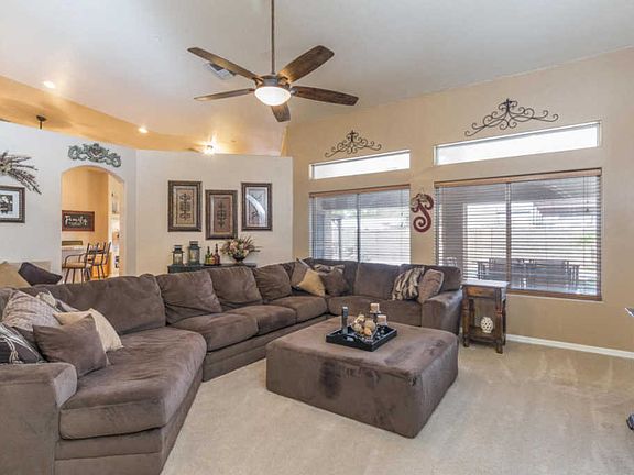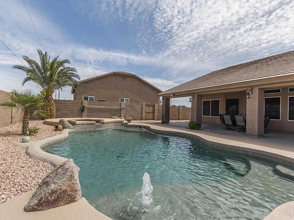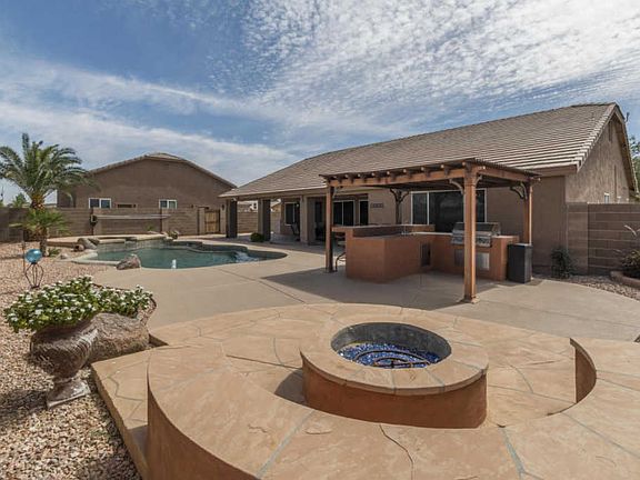 This great home sits on over an acre and offers 4 bedrooms & 2.5 baths in 2442 SqFt. Great room floor plan with split bedrooms. The kitchen features Alder cabinetry, tile countertops, stainless appliances & island with breakfast bar. Just off the kitchen is a spacious dining area with built-ins. A french door leads out to the full-length covered patio & a backyard designed for entertaining! You'll love the heated pool & built-in spa, gas firepit with built-in seating & covered BBQ island with BBQ, sink & counter seating. Huge irrigated side yard is fenced and has a covered slab with water & electric hookups for RV parking & storage shed. Oversized 2 car attached garage & additional 3 car detached garage with storage area. The roomy master bedroom has access to the backyard and a private ** bath with dual sinks, jetted tub, tiled walk-in shower with dual shower heads & walk-in closet. So much more to see at this great property...schedule a showing today!