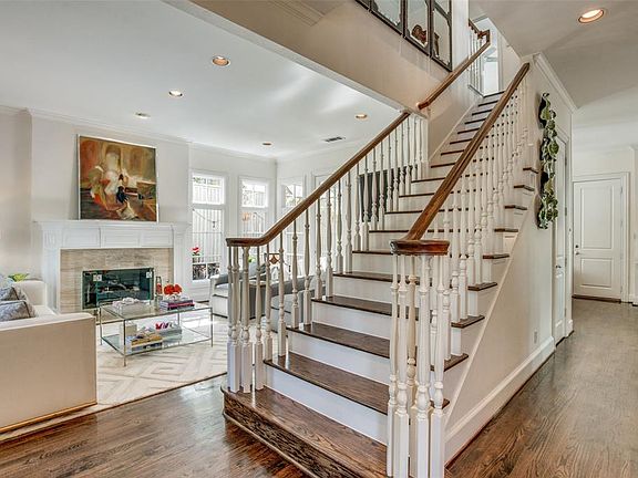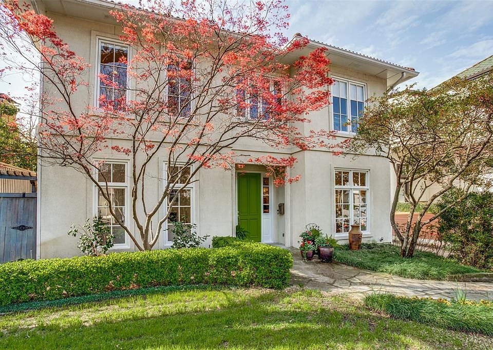 This pristine Mediterranean-inspired home is situated on a heavily treed private lot in a prime location in coveted Northern Heights! Steps from the Katy Trail. This light-filled, open floor plan home is move-in ready, & features many custom designer-inspired upgrades. The spacious kitchen is fully equipped with new matching Thermador stainless steel appliances. Marble countertops are throughout, including the bar area with built in wine fridge adjacent kitchen & dining room. The elegant living & dining room are ideal for entertaining, featuring 10-foot ceilings, oversized windows, a gas fireplace & direct access to outdoor patio with electric screen and turf. 3 bdrms upstairs with additional landing open area.