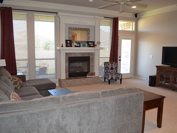 Fantastic Lake Wellington home! The interior has JUST been painted in gray tone & has a awesome floor plan. Updated features include: JUST installed carpet in bedrooms & HVAC system; updated tile wood-look tile planks; granite counters & gas cooktop in kitchen. Kitchen has open site into living area - boasting a gas fireplace, crown molding, recessed lighting & surround sound system. Hall has a great built-in desk study area. Master is a HUGE suite w/bathroom/closet area. Outbuilding, covered patio.