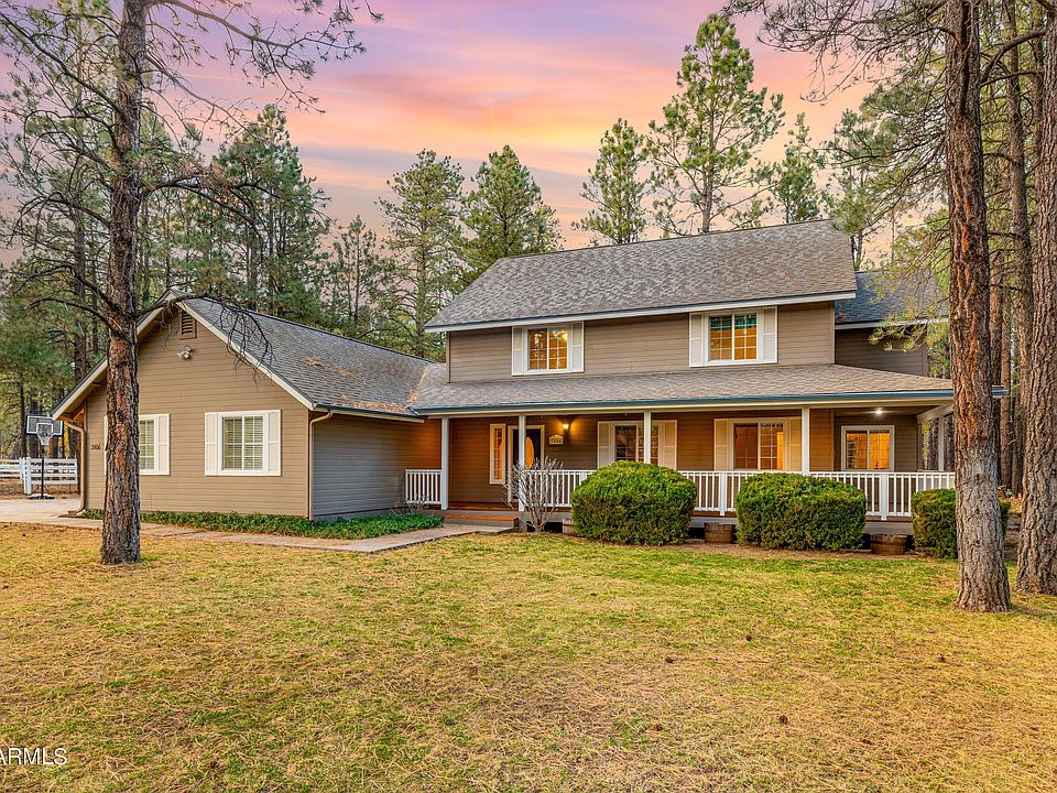 Discover the serenity of this Flagstaff home nestled in the picturesque Westwood Estates on a generous 1.88-acre parcel, offering both spaciousness and natural beauty. This property is an equestrian haven, with plenty of room for horses on the expansive grounds. Immaculate landscaping graces the surroundings, featuring an abundance of perennials that add vibrancy to the outdoor space. Towering pines, accompanied by other mature trees, create a peaceful setting for this charming residence. Step inside to find a roomy kitchen, ideal for gatherings and culinary delights. The family room boasts a captivating brick wood burning fireplace, providing warmth and a cozy focal point for those cool Flagstaff nights. Conveniently located just minutes from town, this home perfectly balances rural serenity with urban accessibility. A brand-new roof and recent updates ensure a modern and well-maintained living space for its fortunate new owners. Additionally, enjoy easily accessible private and endless trails for biking, walking, jogging or horse back riding, conveniently located across the street exclusively for the owners within Westwood Estates.