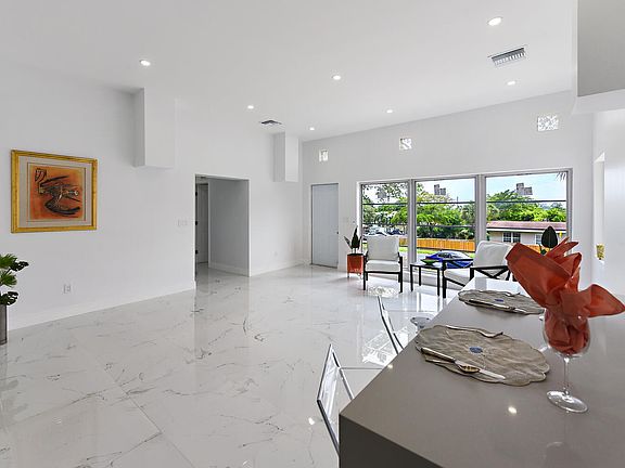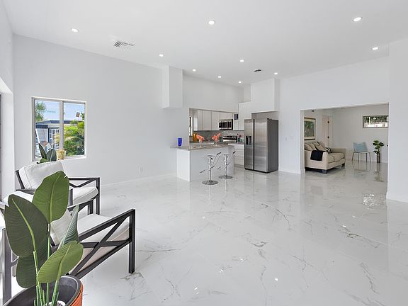 Enjoy sunsets through your enormous picture window from one of the highest sitting houses in WPB. NEW PERMITTED EVERYTHING: new roof, impact windows, electric, plumbing, AC and ducts, tile floors-all with permits. Soaring 10' ceilings in the open, sunny 21.5' long living room. The kitchen has new soft-close cabinets, beautiful quartz counters and Samsung SS appliances. Enter the large master bedroom through French doors. The master bathroom is a spa retreat with an 8' long shower complete with rain head and bench. Walk outside through sliders in the master bedroom or family room to your new patio and large backyard surrounded by mature shade trees. This hilltop jewel sits on almost 1/4 acre in historic Northwood Hills close to beaches, downtown and Rybovich. Buyer must confirm measuremts.